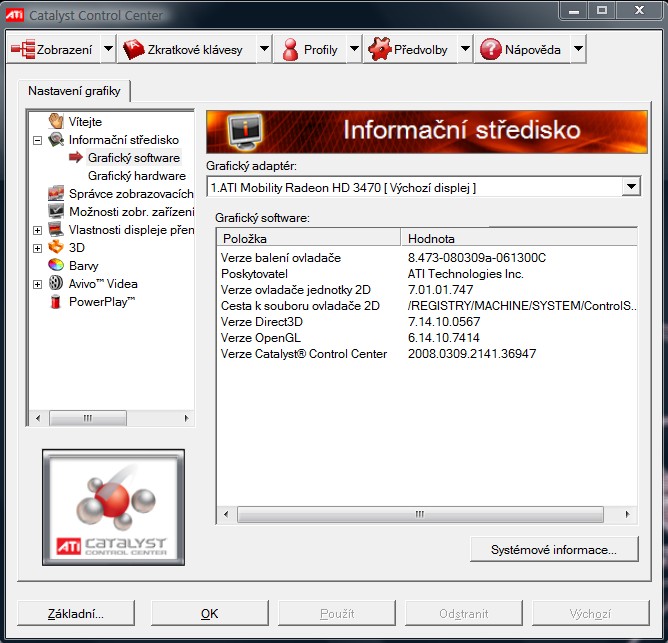 To máš driver od výrobce NTB nebo standardní AMD/ATI? Ten standard nemusí na mobilním Radeonu fungov…