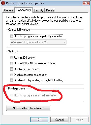 Nikomu nedám admin oprávnění. Ve vlastnostech bych zatrhnul spouštění programu s admin právy.