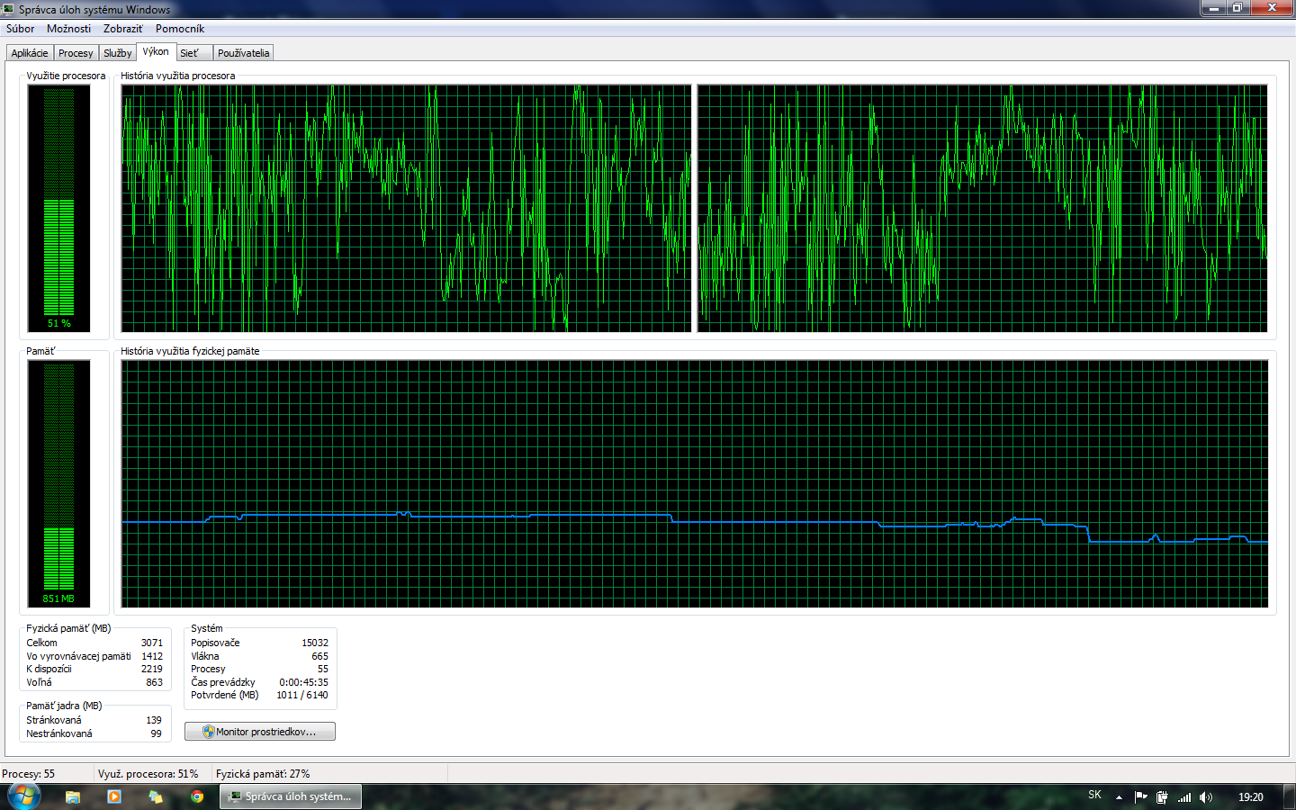 Takto vyzerajú procesy ked nieje nič zapnuté. A keď zapnem hocijaký program je to plných 100%, ale veľkosť procesu programu je taká istá ako inokedy, niečo mi zamestnáva CPU, ale nie je to vidno, dakujem za pomoc