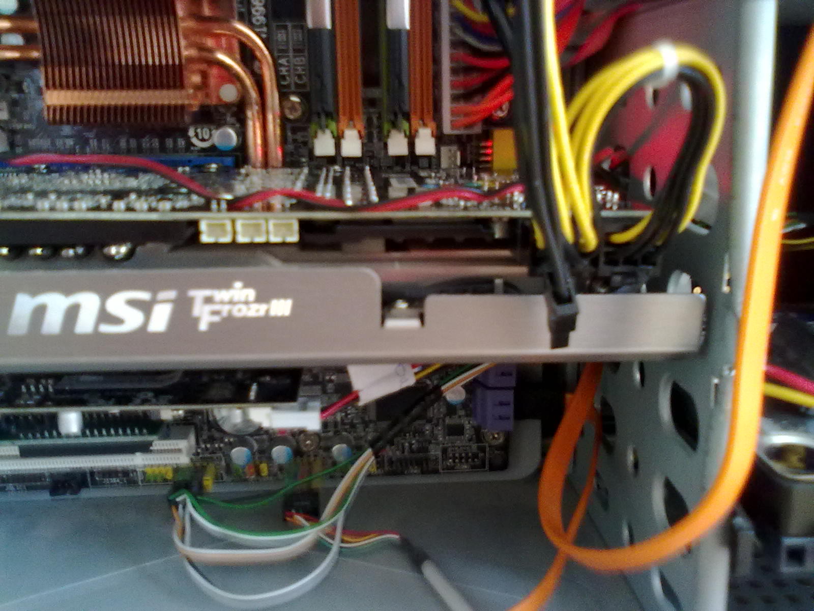 Dáš ju do PCI-E slotu,šroubkem chytneš k zadku bedny a připojíš od zdroje na obr,žluto černej kabel… nový