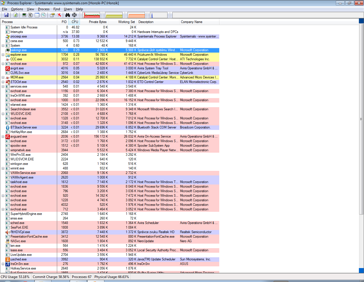 správce úloh (process explorer je lepší), a sledovat vytížení jednotlivých procesů - správce úloh se… nový