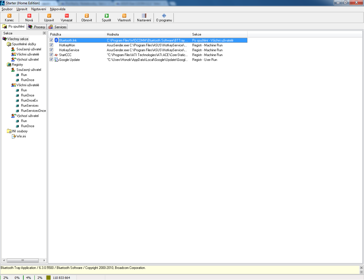 Ony ty Startery fungují celkem dobře (když od nich nic velkého neočekáváš), ale už jsem pár notesů přeinstalovával na W7HP (neptej se, z jakého média ]:)). Spíš bych potřeboval vidět "ofocené" okno CS_Starteru - ta nádhera si pravděpodobně instaluje nějaký bloatware, který ti po čase začne konzumovat strojový čas.