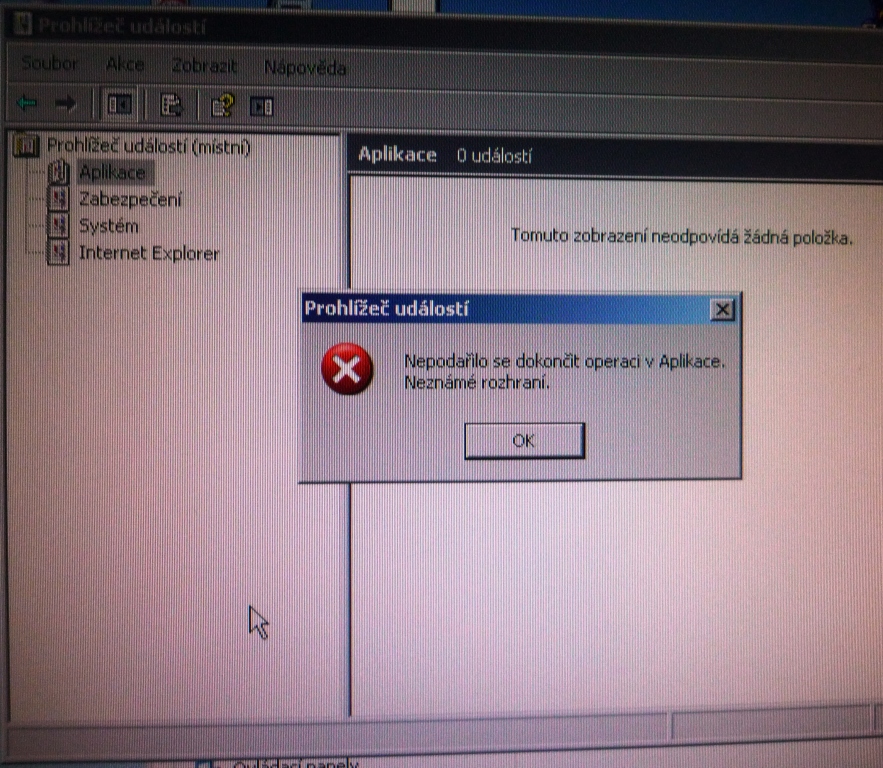 Tak prohlížeč událostí nemůžu žádným způsobem (který já umím, tzn žádný) rozchodit, zkusil jsem ten scan disku, ale žádnou chybu to nenašlo. Zkouším spouštět jak diagnostický, tak nouzový režim, pořád to háže tu chybu, že se nepodařilo dokončit operaci...Neznámé rozhraní.
