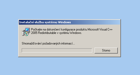 Tak dobrá zpráva je, že kompl frčí vcelku bezproblémů. Blbá zpráva je, že to instalace toho balíčku (KB961894 – VC ++ Post 2005 SP1 Redistributable) nějak nefunguje - začne to najíždět, pak to jakokdyby nic nedělá asi 2 minuty (viz obr.) a pak to zmizí, bez jakékoli hlášky. takze to s tím ordinálním číslem vyskočí vždy po naběhnutí systému.