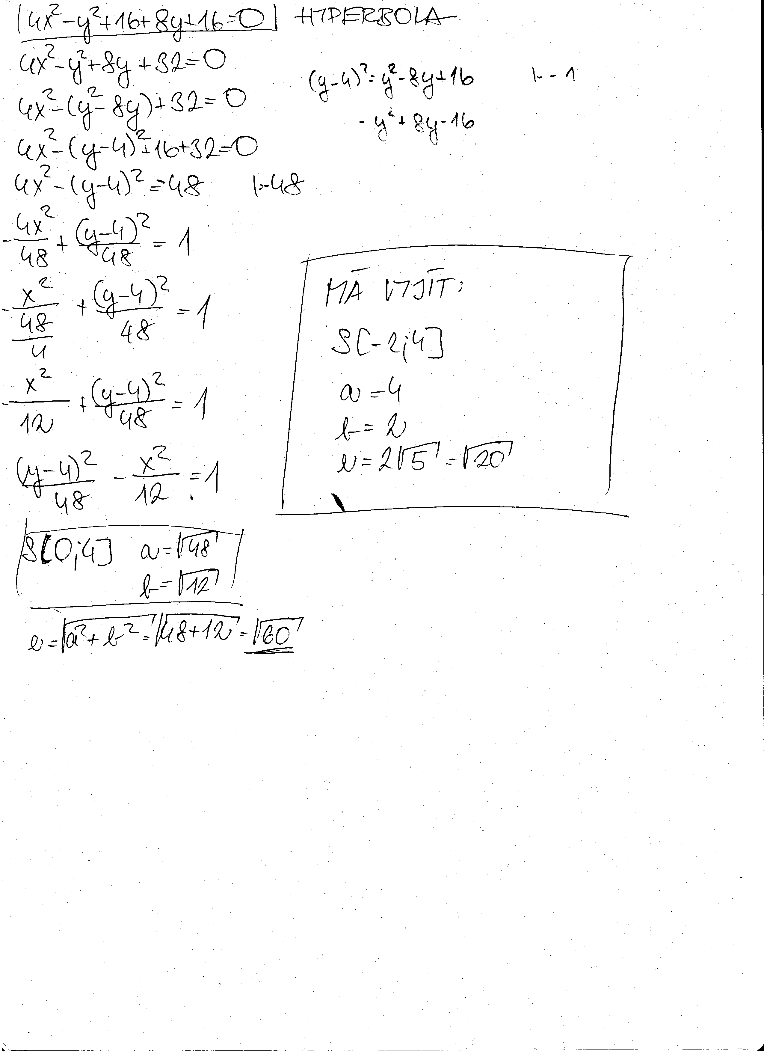 jedná se o hyperbolu a počítám to už po několikáté, ale nechce mi pořád vyjít.
