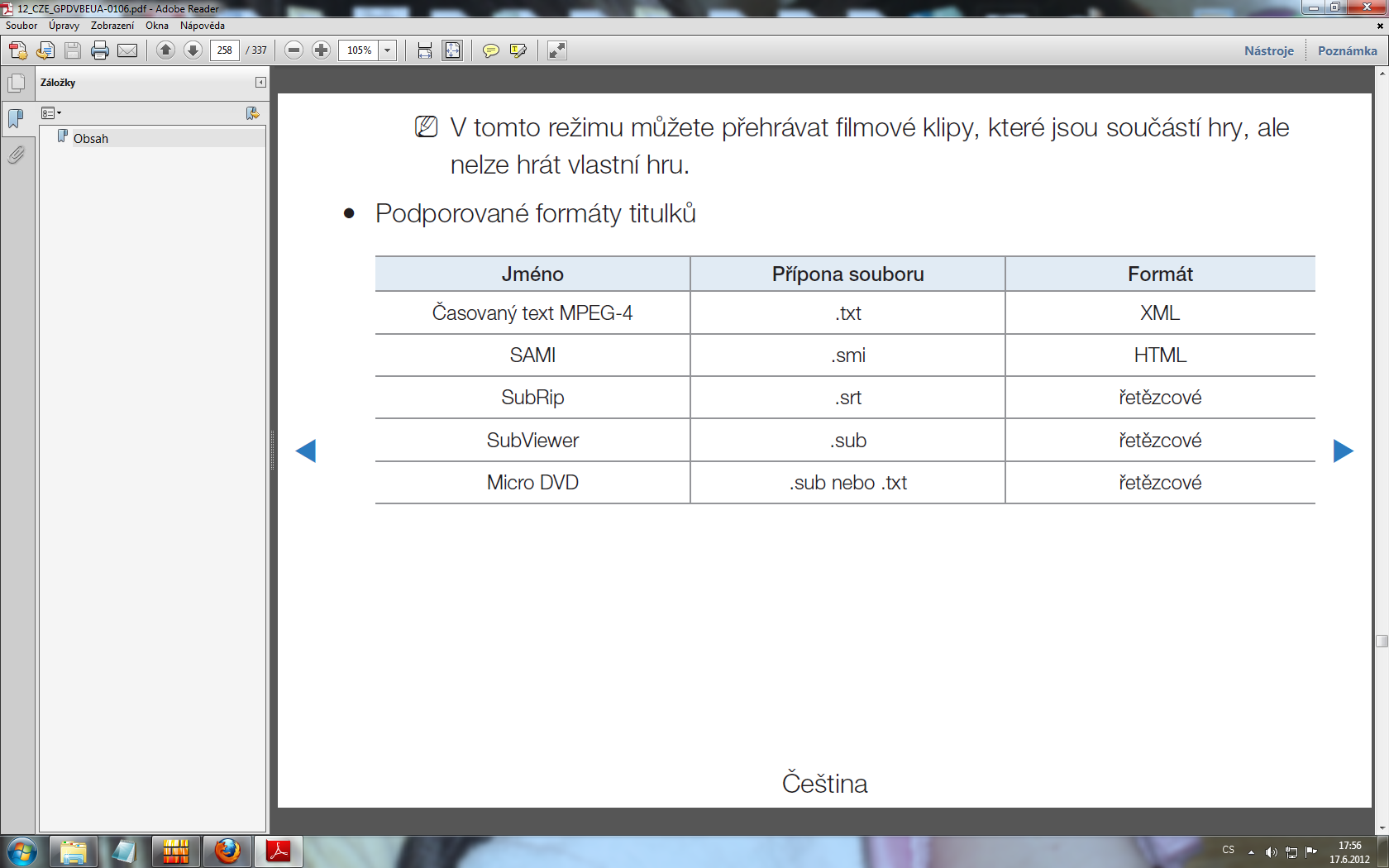 To jen znamená, že to umí formáty externích titulků. O integrovaných (vnořených) titulcích tam není…