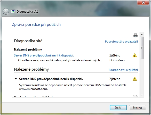 Diagnostika sítě: