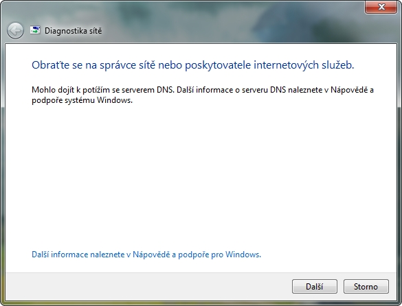 nečteš ani co ti windows píšou. nastavte si normální dns server: google dns nebo opendns