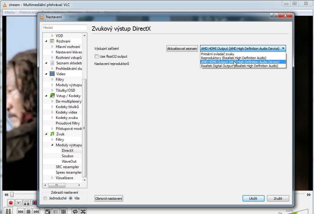 Nastavil jsem to primárně že z VLC jde zvuk přes HDMI.
