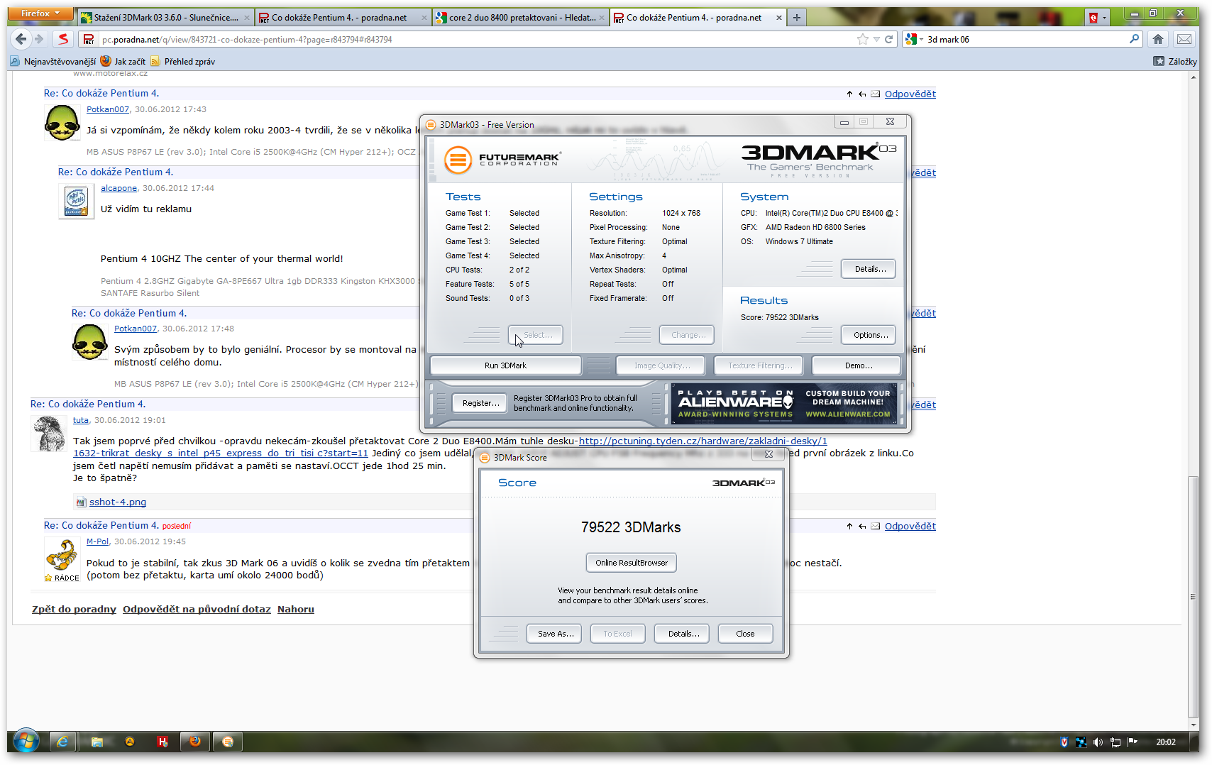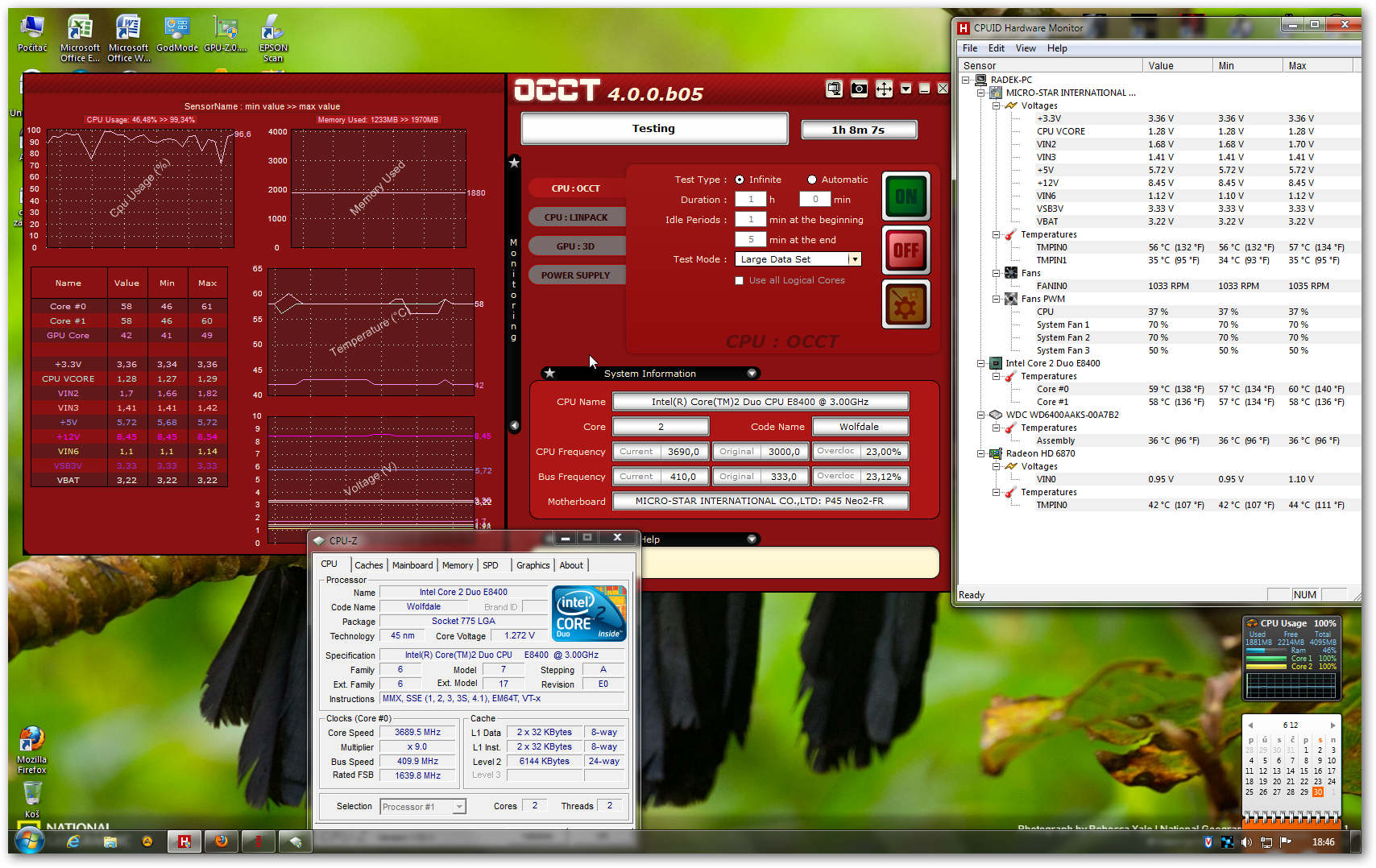 Intel Core2Duo E8400 @ 3 Ghz se mi povedlo přetočit asi na 4,3 Ghz (už si to přesně nepamatuju), výš…
