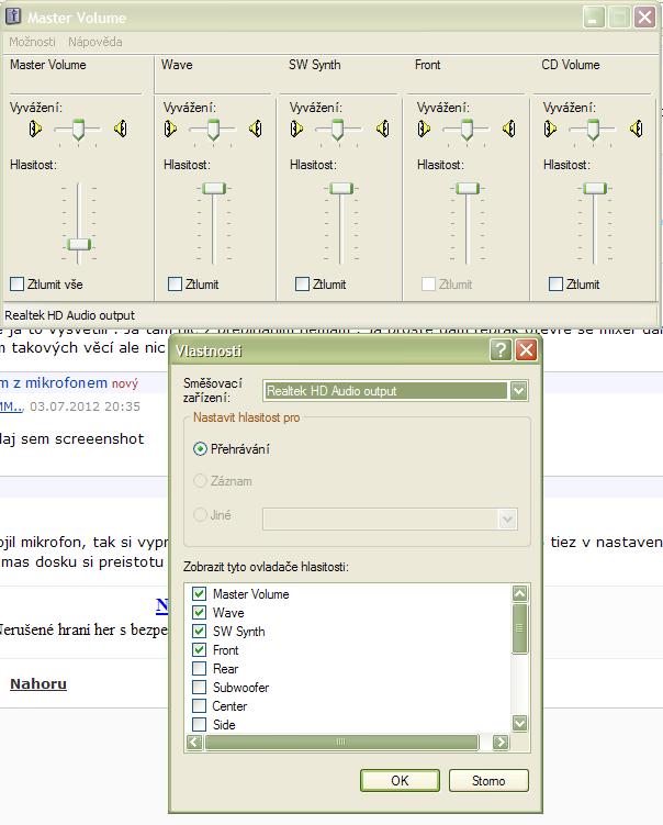 Navrchu si vyber Realtek HD audio input, v spodnom zozname je potom co? Kliknes na OK a nasledne v m… poslední