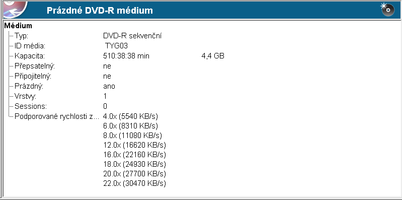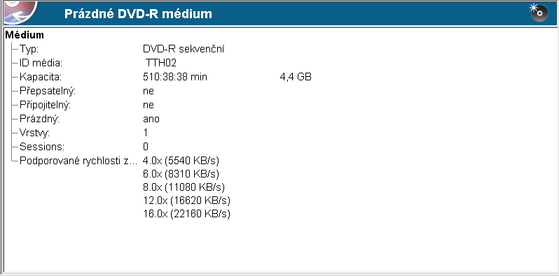 Takže možná Verbatim, vypalovací program neznám, ovladač se furt hledá...