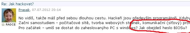 Pro začátek - umíš se dostat do zaheslovanýho PC s windows? Jak obejdeš heslo BIOSu?