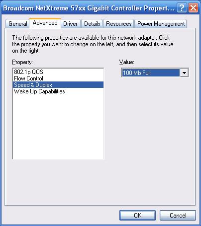 nastav si na síťové kartě napevno režim 100mbit/full duplex.