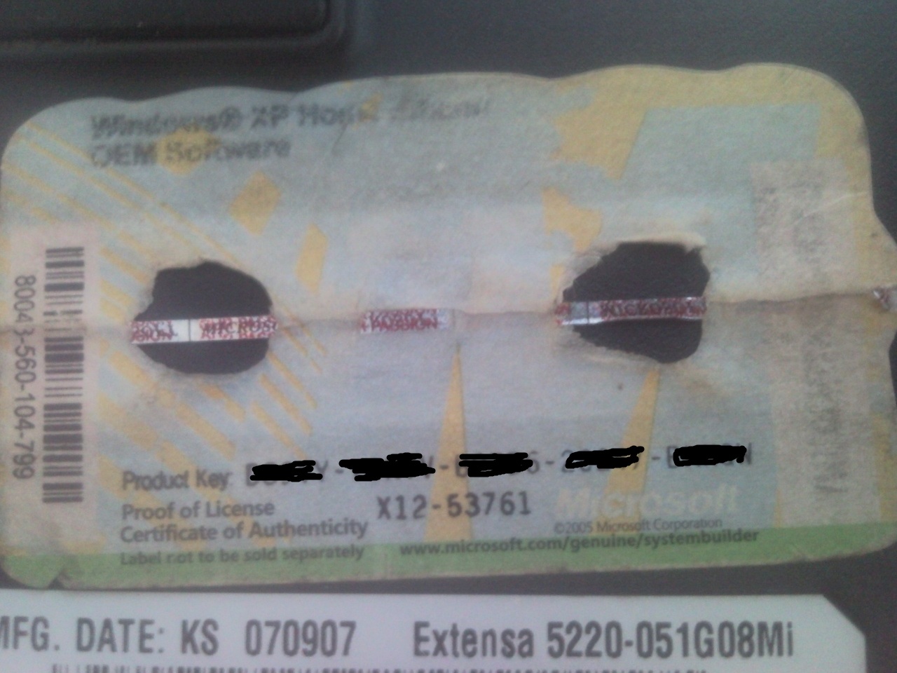 Přeinstaloval jsem systém windows xp sp1 na Acer Extensa 5220. Zkouším aktivovat win ale nedaříse, píše to že mám neplatný kod a při tom mám nálepku s originál klíčem. (Viz. foto) Tak jsem zkoušel nainstalovat sp2 - to samé. A sp3 a pořád "neplatný kód".