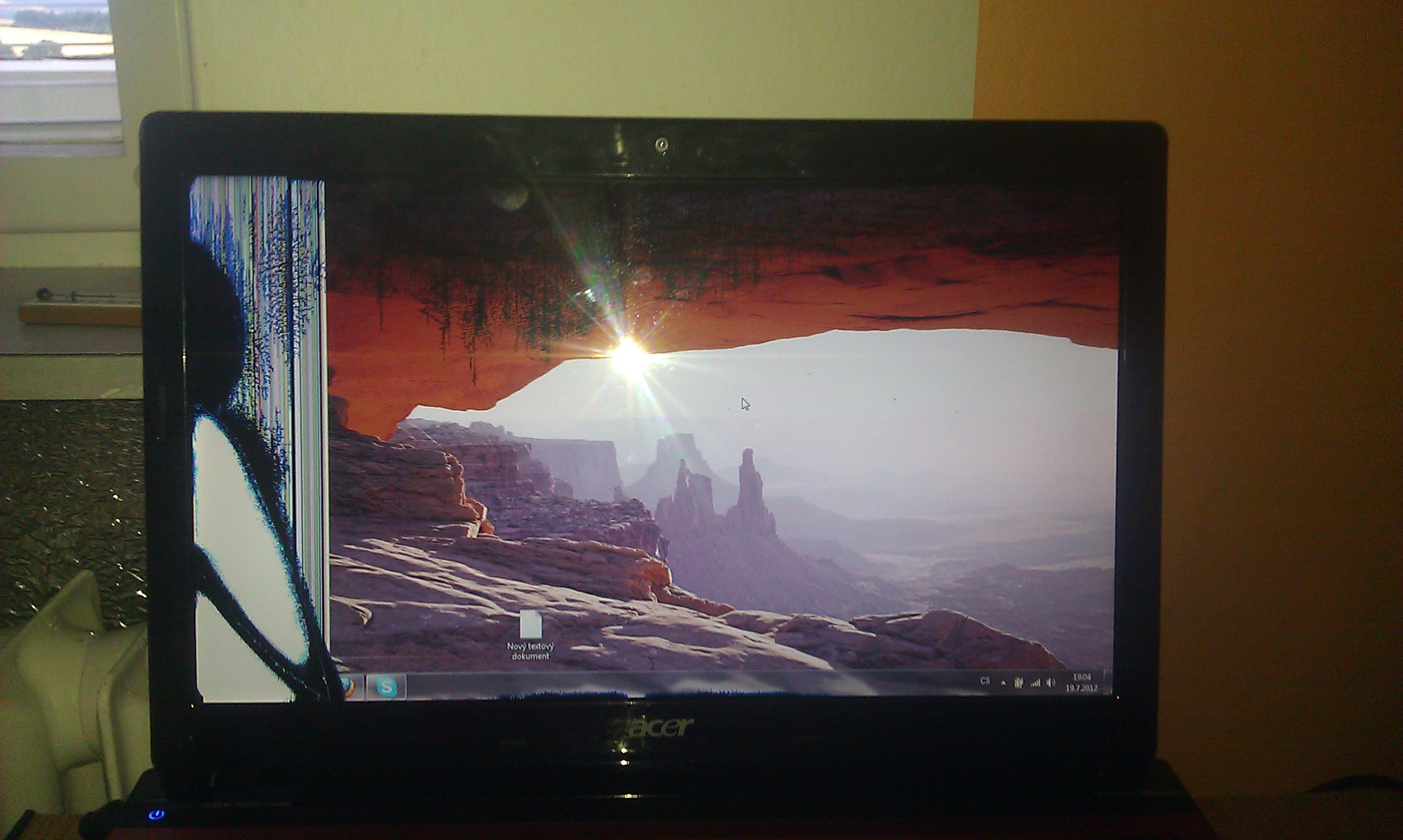Dobrý den, potřeboval bych poradit. Koupil jsem notebook od kamarádá ale bohužel bez infa. Notebook má prasklý displej, mechanicky nejde poznat že by spadl na zem. V příloze je foto. Jde o Acer Aspire 5750G. Notebook byl zakoupen 20.10.2011 u Alzy.cz . Nevím zda mi reklamaci uznají nebo ne. Jaký je Váš názor? Děkuji