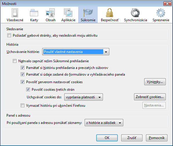 Chcem docieliť, aby ostalo stále nastavené, že si má pamätať, že som naposledy prepol na "Použiť vlastné nastavenia". Lezie mi to na nervy odkedy to Firefox začal meniť vždy naspäť na "Pamätať si históriu prehliadania". Najprv som to bral tak, že je to chyba, ktorú opravia, ale ako vidím, nie je to jediná chyba, na ktorú sa vysrali.