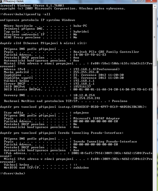 nastavení tvého připojení (ipconfig -all)?