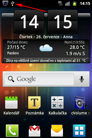 EDIT: Nejsem si teda úplně jist, jestli to platí i pro Galaxy Mini, který je trošku starší. Ve stavové liště Vám najede aspoň informace o připojení, nebo vůbec nic?