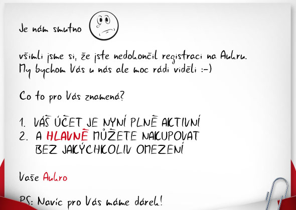 Před asi dvěma lety jsem se registroval na aukru. Přišel mi registračni dopis, jen registraci jsem nikdy nedokončil, jelikož jsem ji už nikdy nepotřeboval. A teď mi dorazil tento email: