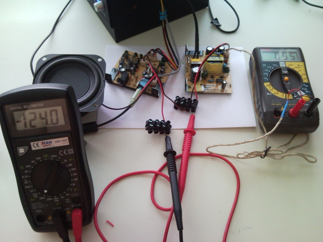 Spíš máš v prdeli koncové stupně. Zatěž ten výstup ze zdroje jen nějakou žárovkou (řekněme 12V/2W),…