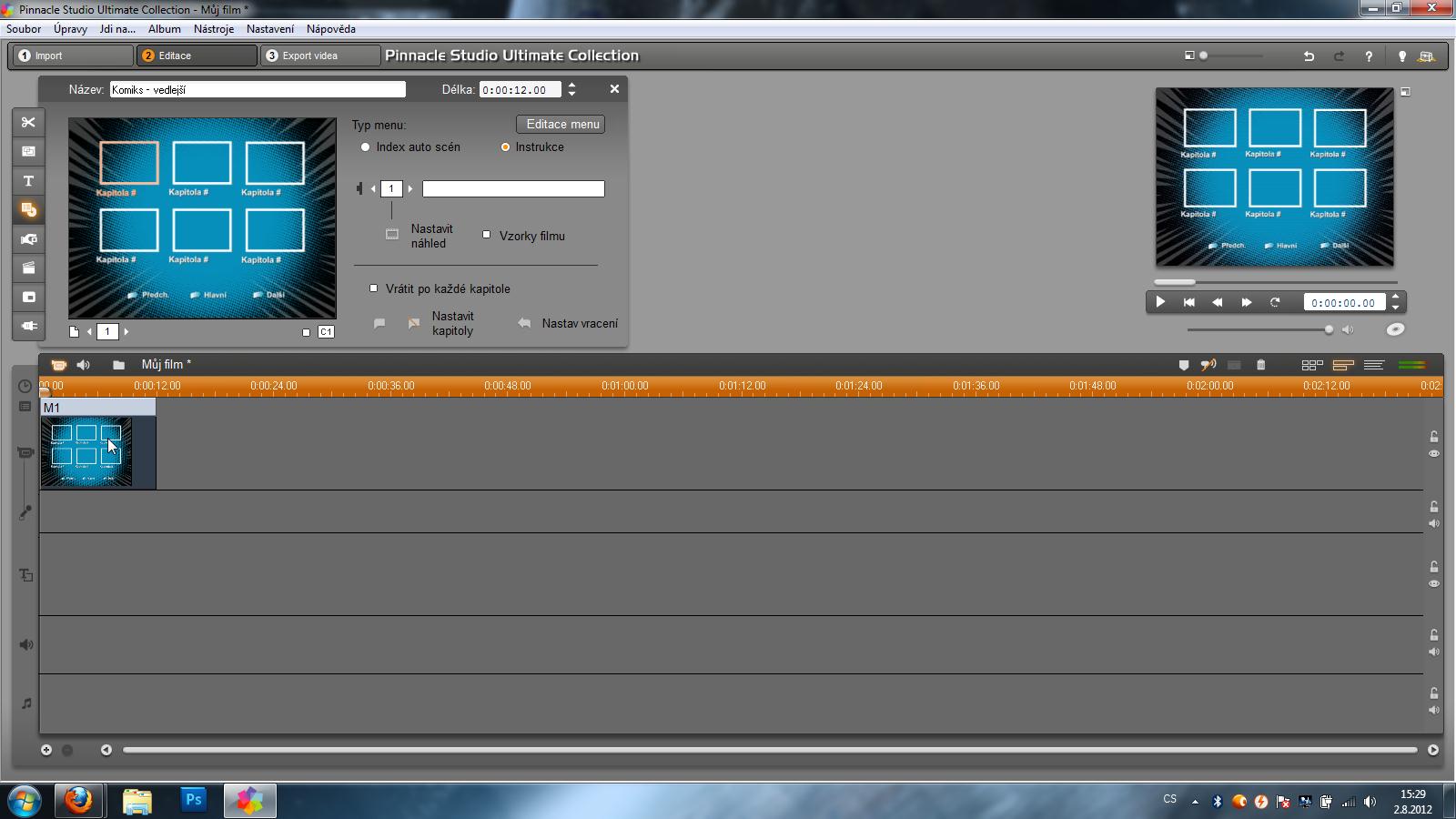 Nazdárek bazárek. Potřebuji poradit jak udělat menu kde bude odkaz na přehrát film a zároveň na výběr kapitol, ale každá kapitola se po skončení vrátí zpět na výběr kapitol. Pokud to nejde v pinnacle studio 15 tak poraďte prosím ve kterém by to šlo. Samozřejmostí je výstup v HD kvalitě. Předem děkuji za odpovědi.