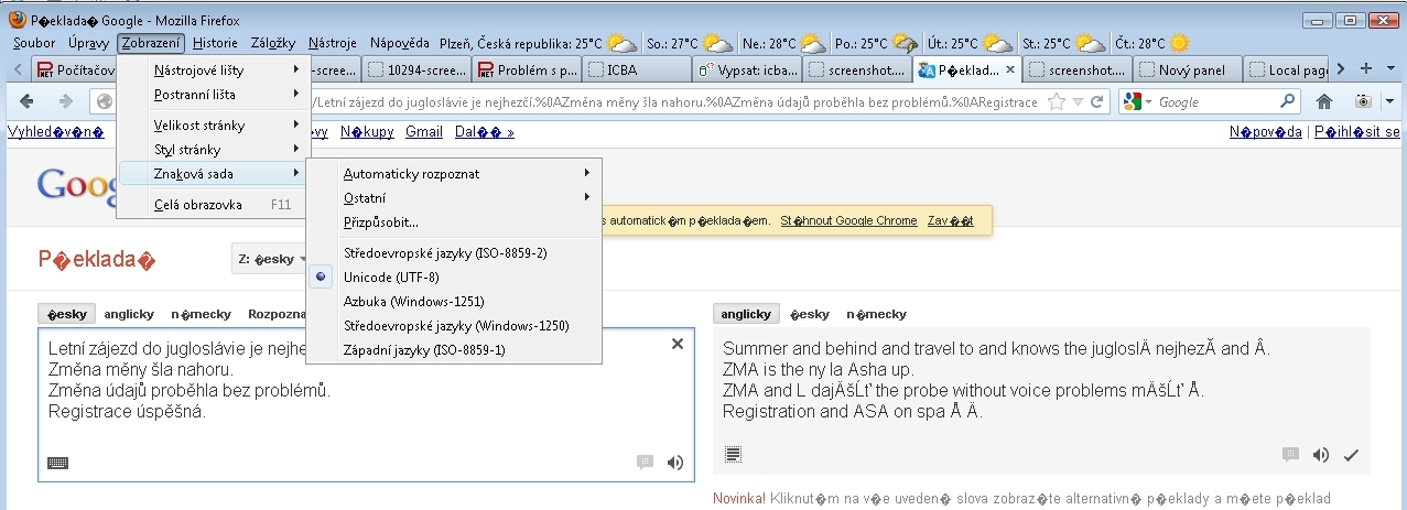 kódovaní jsem zkoušel všechny ty základní co prohlížeč nabízí viz.