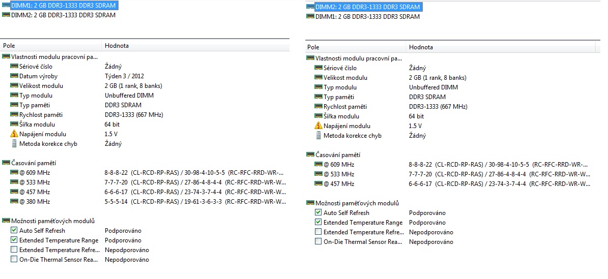Přidávám obrázek kde jsou paměti RAM a modely jsou stejné lae mají tma nejakou změnu. Ale i když je přehodim za jiné tak stale ukazujou neco jiného.