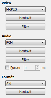 Po importu si vlevo v nabídce nastav u videa M-JPEG, u zvuku PCM a formát AVI. Je to ideální výstup…