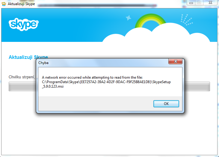 Zdravím, u skype mi vyskakuje aktualizace, ale když dám aktualizovat tak je nějakej error :( nevíte co s tim? viz. obrázek