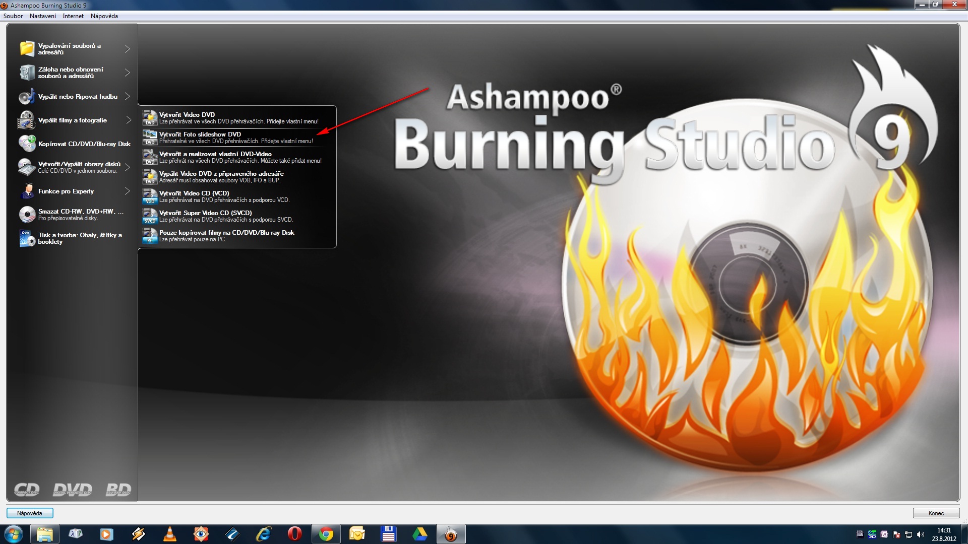 Zmena rozmeru pred vypalenim bude nezbytna. Tech 8mpx je pro tento supermarketovy kolovratek zrejme tvrdy orisek. Zkusebne vzit par fotek, zmensit na rozmer napr. 2048x1536, vypalit na RW medium, otestovat v playeru. Dalsi moznost je vytvorit z danych fotek slideshow primo treba v tom Ashampoo softu, nevim jaky pouzivas jestli free nebo placeny, ja mam ten druhy a tam ta moznost je, viz screen.