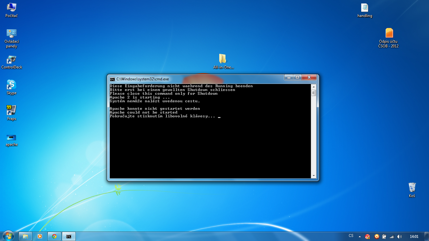 udělal jsem to a apache píše systém nemůže naleézt uvedenou cestu
