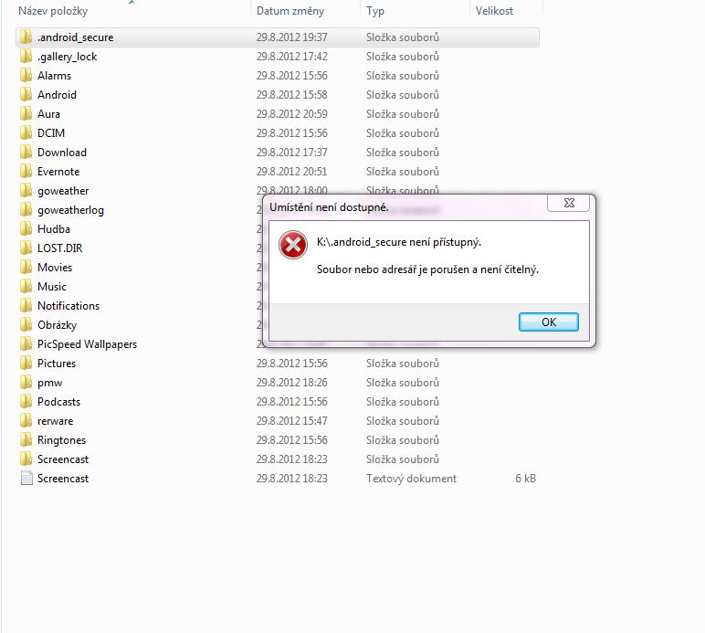Poškozená karta SD? (Android)