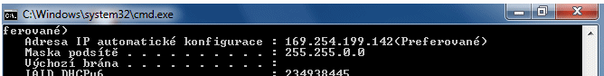 příkaz "ipconfig" vypíše adresu brány = routeru.