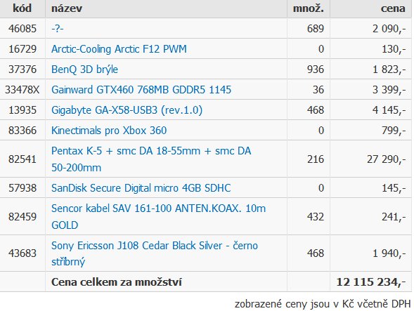 kód název množ. cena