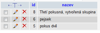 Potom mám druhou tabulku newsletters_skupiny_hlavni, která obsahuje sloupce čísla: