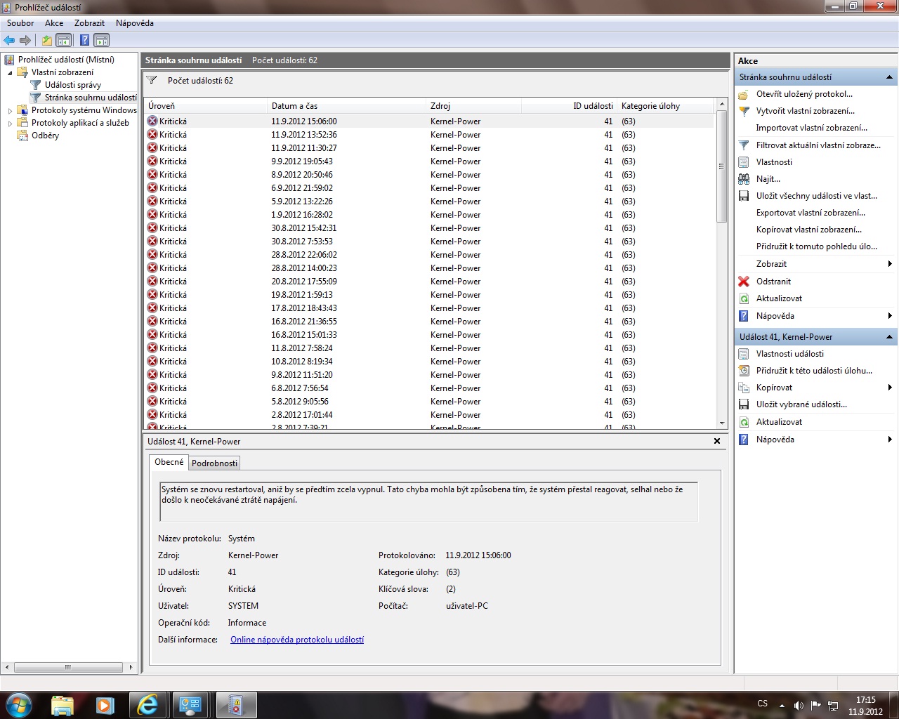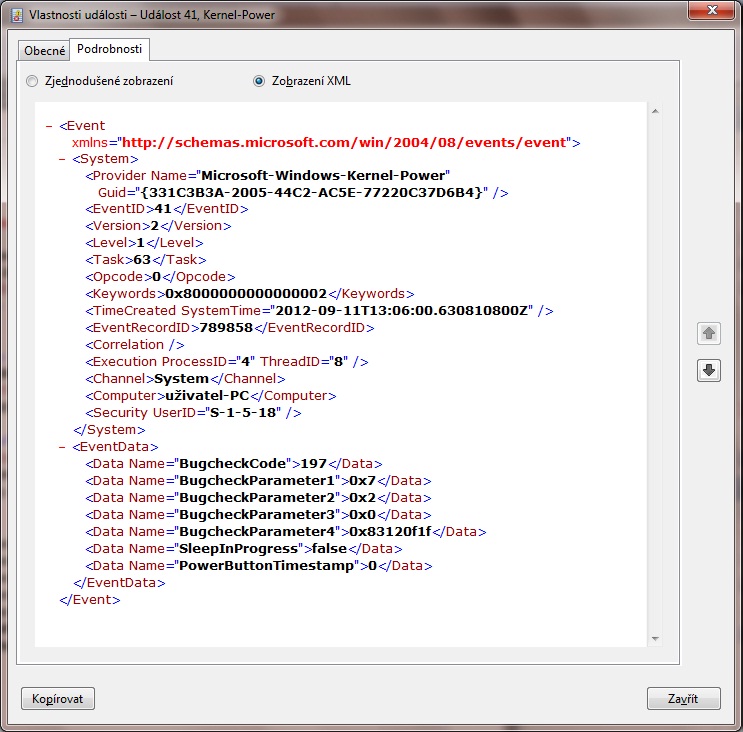 chyba z eventlogu může být způsobena i shitovým zdrojem.