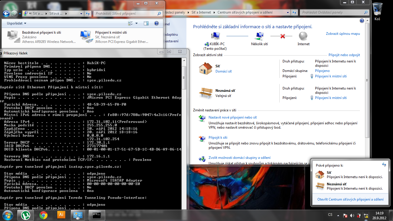 Ahoj, jsem na intru a když se chci připojit k síti tak se připojím ale už se nepřipojím k internetu. V přiloženém obrázku vidíte (nevim jak to nazvat..) který nastavuji ručně na enable, když tohle udělám tak 4x tak se to připojí někdy tomusím zkusit víckrát, ale vůbec nevím,jestli to má nějaký vliv, a vždy se to vrátí po připojení i nepřipojení zpět na disable. Když nejsem připojen k internetu, tak v Centrumu síťových připojení a sdílení mám kromě domácí sítě ještě veřejnou síť kterou nevím co tam dělá, když se tam neobjevítak mě to připojí. ovladače nepomohli. Mám win7 64...prosím moco pomoc......) nevím co mám dělat a takhle ručně to dělat každý den je už otravný...Děkuji...)
