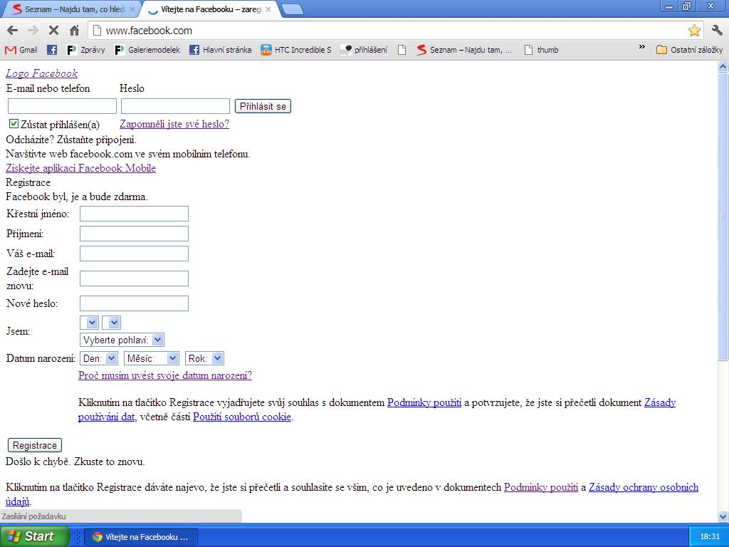 Facebook nelze najet