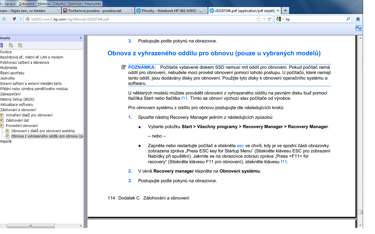 Ked neklapne vobec nic tak bud mas iny model notebooku a ne ten co si zadal do HP webu, alebo mas rozdrbany windows alebo vadny hardware, idealne bude potom recovery a uz do toho nedrbat. Kapitola o recovery urcite v manuali je.