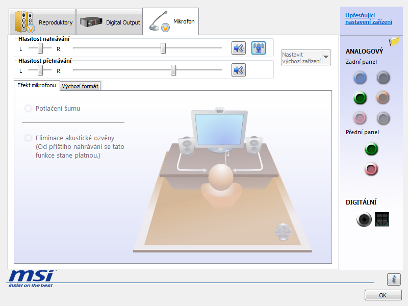 skús ešte upraviť zosilenie mikrofonu,niektoré potrebujú zosilenie na min 4dB