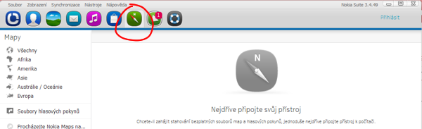 stahni soft, instaluj, pripoj telefon, klikni na ikonu mapy, vyber zemi, stahni do telefonu. nový