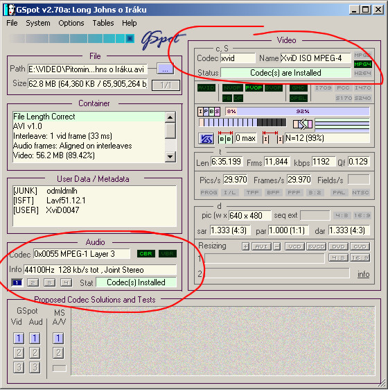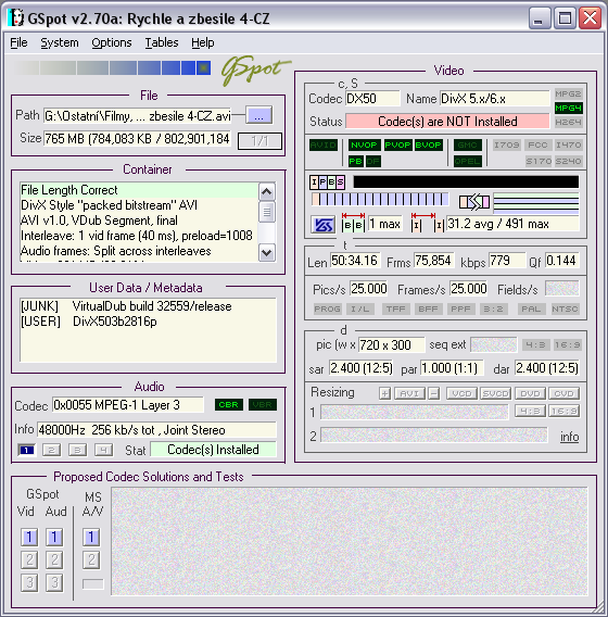 "Nepřehratelné" avi zkonvertuj třeba ve FormatFactory podle údajů přehratelného videa v G-spotu.