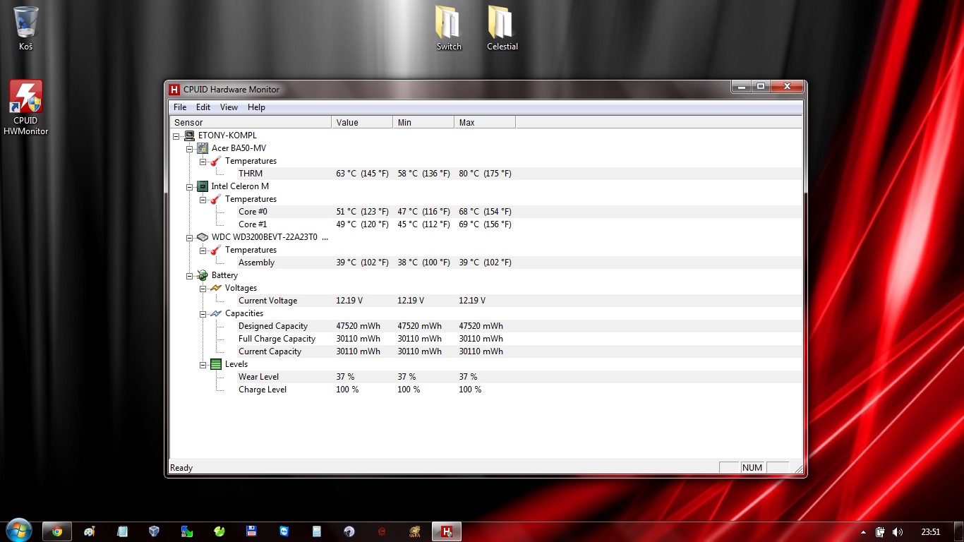 No nepodařilo se mi najít program který by to tak nějak přesně dokázal, dle SpeedFan se teploty pohybují okolo 40°C ale rukou mi přijde že nemá ani 20°... a jelikož to dělá ihned po zapnutí, nepřijde mi že by se tak rychle dokázal přehřát a že by se taková porucha projevila nakloněním..