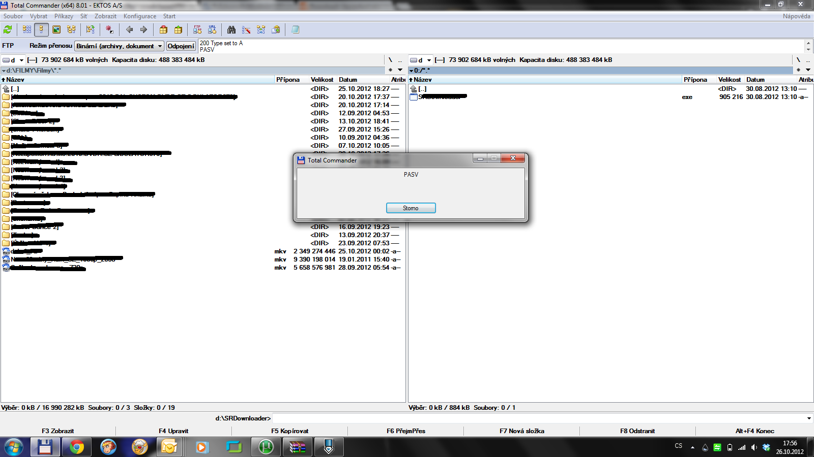 Čau, mám takový problém donedávna jsem normálně používal pro přesun souborů na webové stránky FTP klienta v TC. Teďka se mi to zasekne na tomhle místě. Všechno mám správně, protože na stránkách poskytovatele se přes webftp připojím. Nevíte co s tím? Mám Win 7 HP. Díky