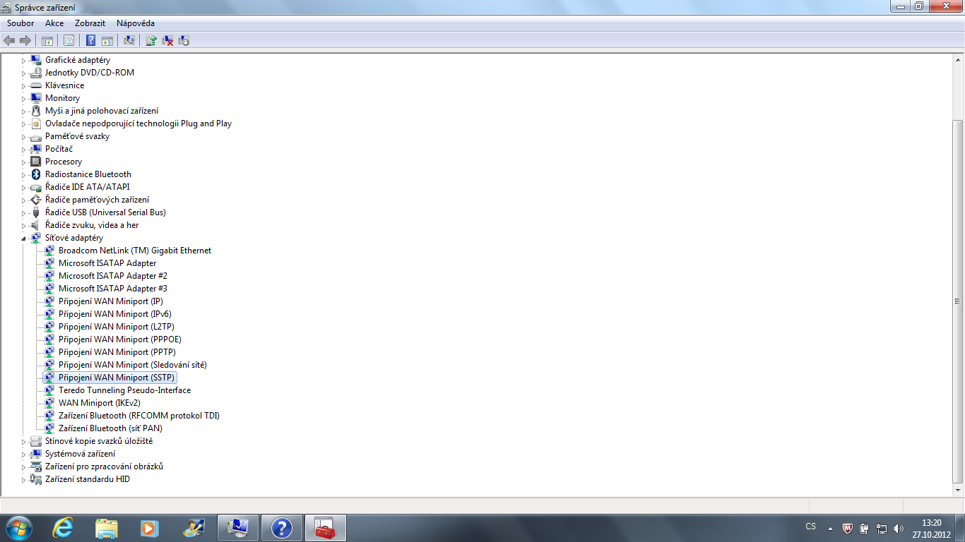 Na notebooku i ve správci zařízení (viz obrázek) ale wifi nevidím. Ani žádný žlutý vykřičník a pod. u neznámého zařízení.