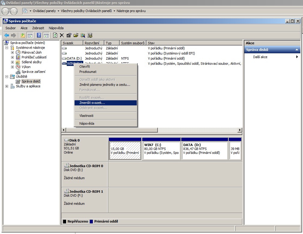 | Zmenšit C, z toho co zbyde potom vytvořit další oddíl. Předtím zálohovat data. karel 28.10.2012 19:41 |