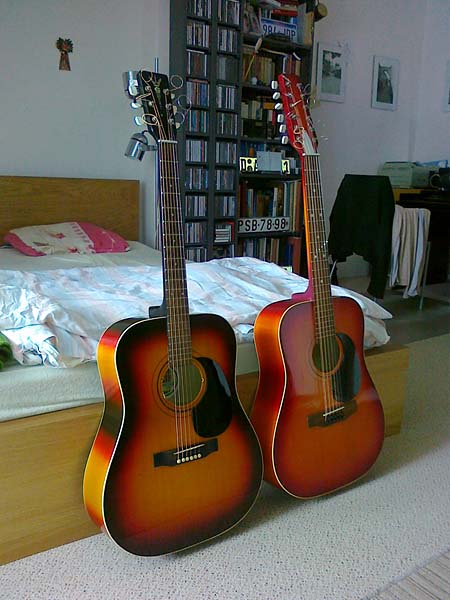 - dvě kytary (z aukra) koupené za velice slušnou cenu; určené na takové to domácí brnkání bez větších ambicí: