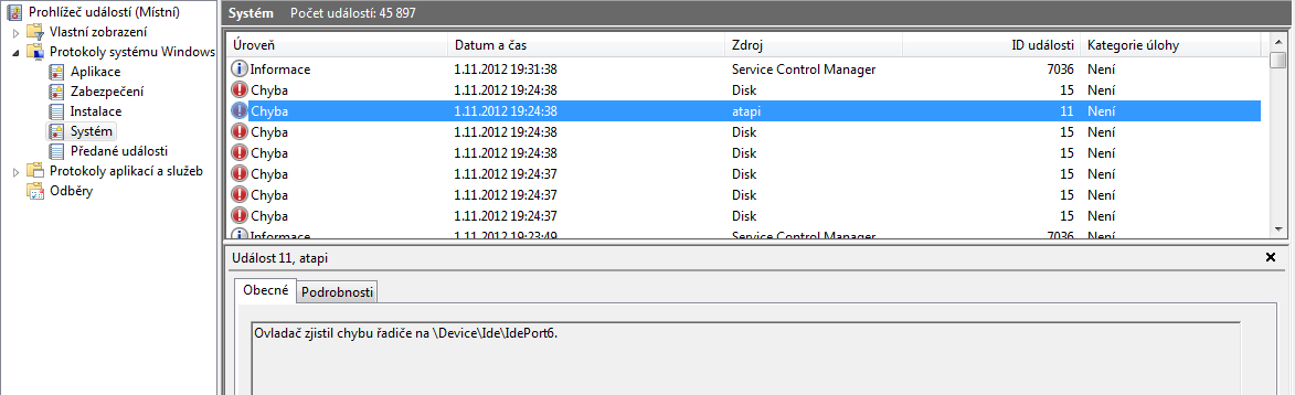 Mám problém s vytuháváním PC jak při hraní her, přes pouštění videí po běžný provoz (prostě náhodně v jakýchkoliv situacích - tohle píšu podruhé :(, protože mě to zas vytuhlo když už sem to měl skoro hotový ). V prohlížeči událostí sem našel nějaký chyby - asi bude něco s diskem, ale speed fun říká, že by měly být good (ale nevím, jestli to chápu dobře - viz obr). Takže kdyby někdo podle přiložených obrázků poznal v čem je problém a jak ho řešit, tak předem díky za zprávu.