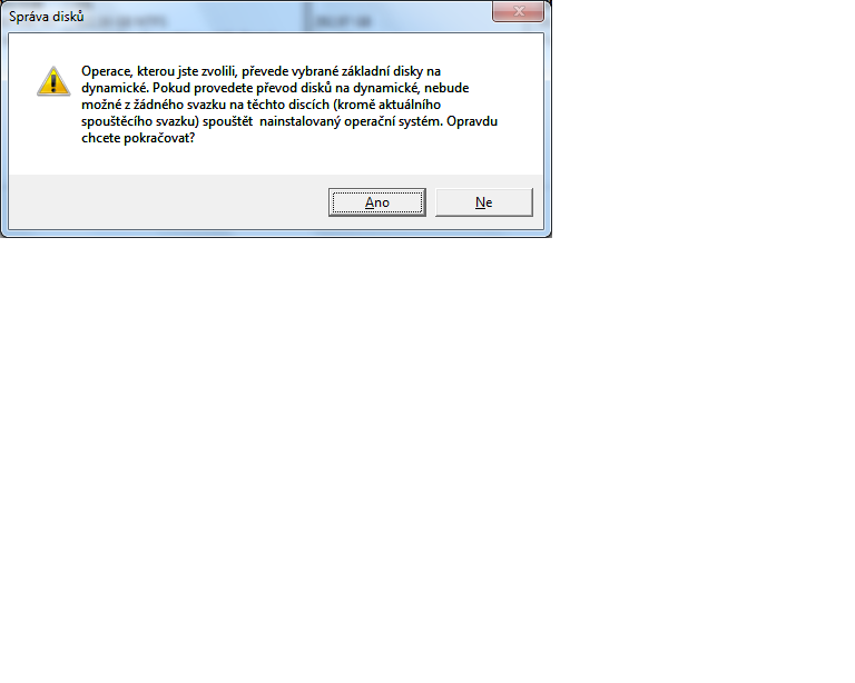 Pak se objeví hláška(obr.3), že Operace, kterou jste zvolili převede vybrané základní disky na dynamické.